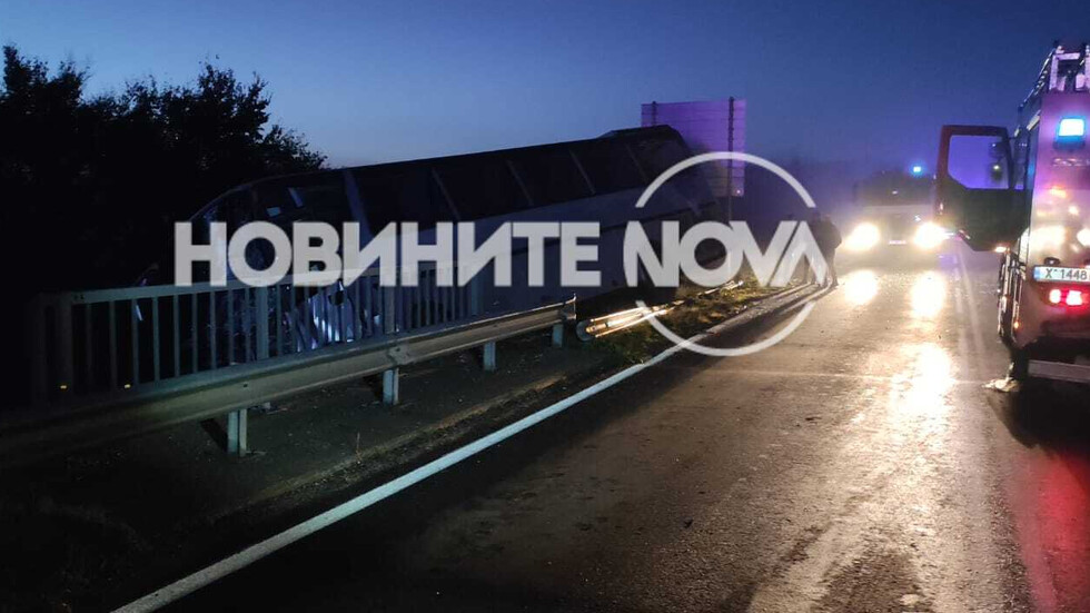 © nova.bgАвтобус с работници надвисна над дере след удар с тир край Симеоновград
