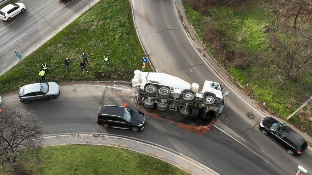 2Фото© actualno.comБетоновоз се обърна на булевард в София