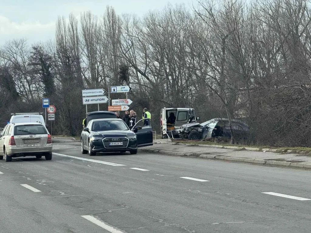 Ударили са се няколко коли и бус, които са със сериозни щети. На място има екип на полицията. Все още няма информация дали има пострадали.